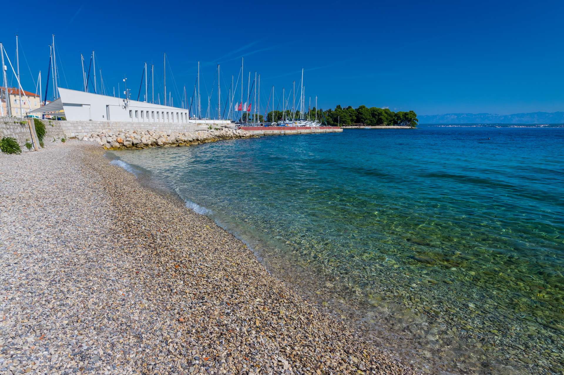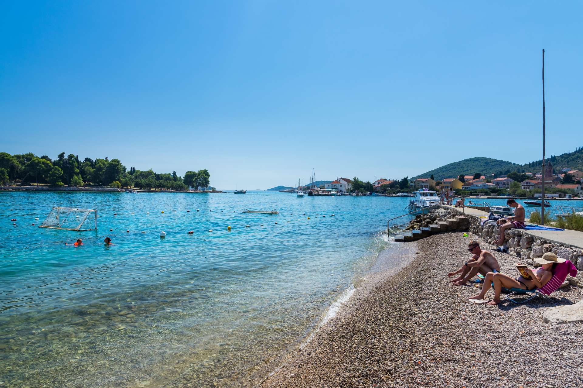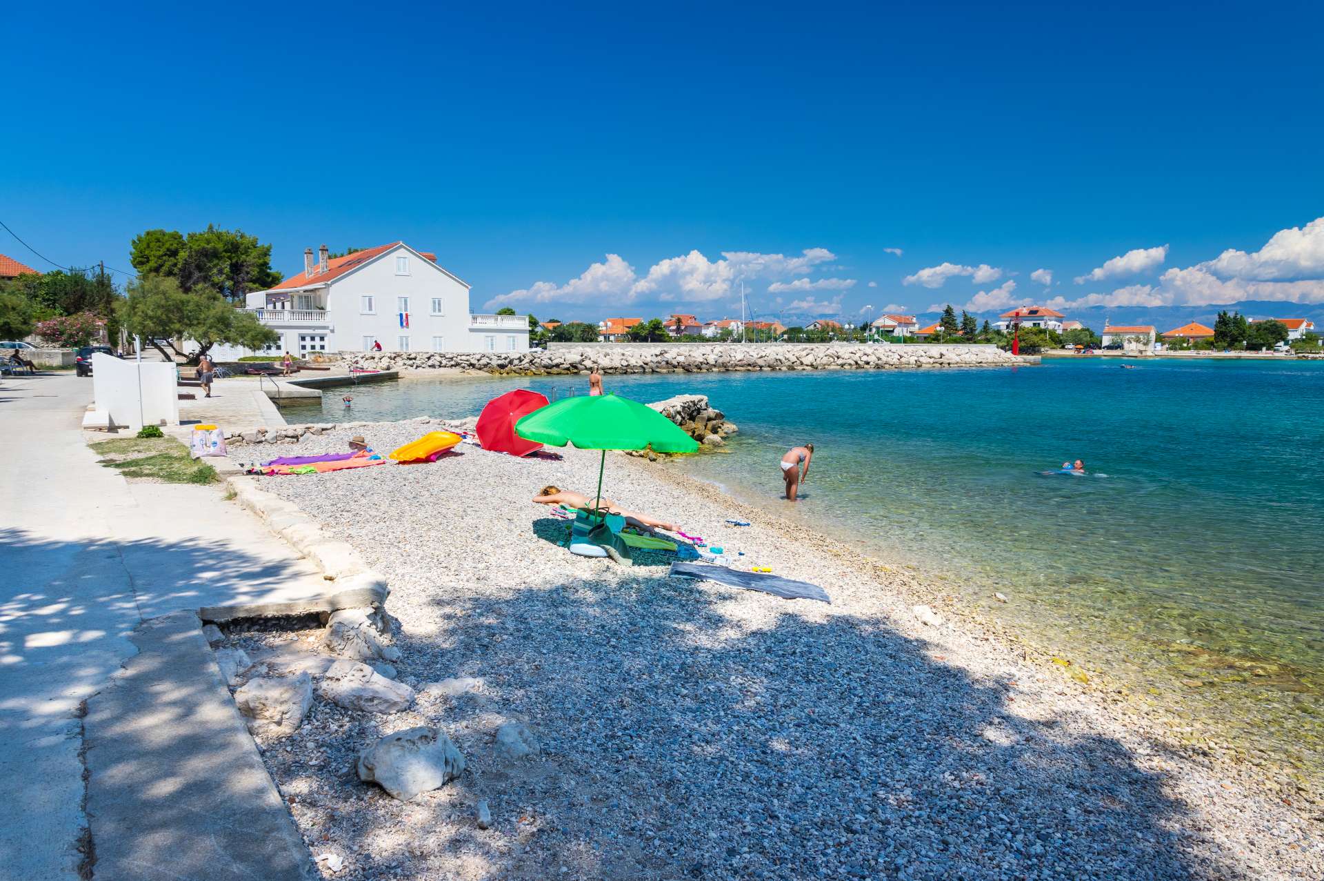 Right behind Marina Preko, in the centre of the town, behind the breakwater, "parapet", is the beach of the same name. It is a pebble beach, suitable for families with children and the elderly. Right next of it is the beach Elektra. The beach is paved, there are deck chairs, a changing room and a shower, and there is children’s park and playground in the immediate vicinity. The beach is pebbly, the seabed is sandy and rocky.