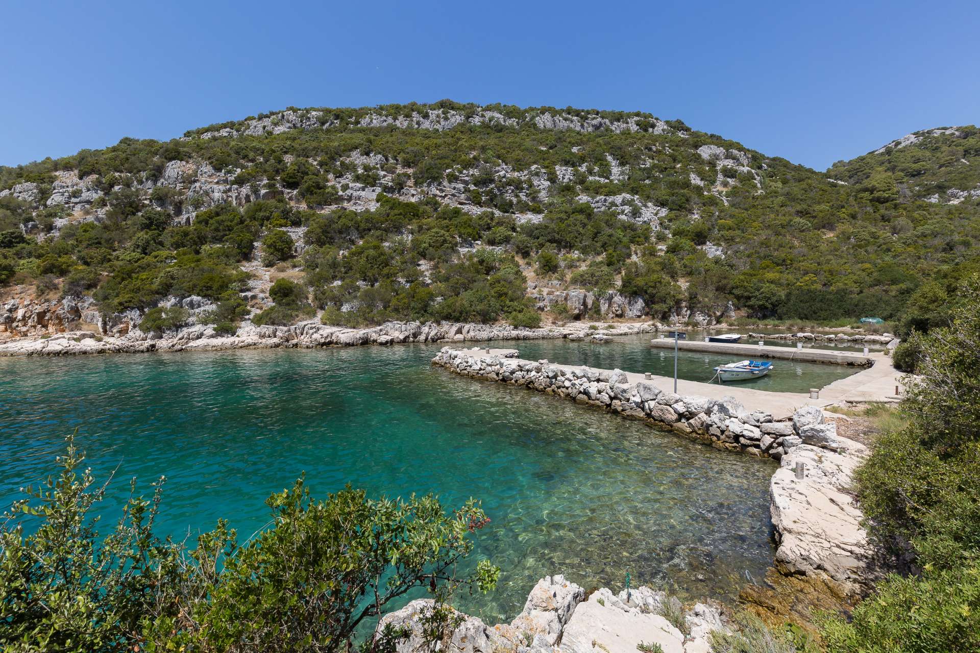 Quiet small port with several houses and a berth for boats of local fishermen. Next to the harbour is a pebble beach suitable for adventurers and fans of peace and quiet.
