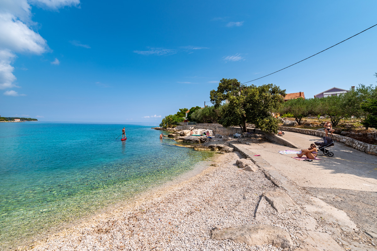 Beach Kašun is located right behind beach Jaz, on the waterfront to the north. At the foot of the stone fence wall is a small pebble beach suitable both for families with children and for the elderly. It has an easy access to the sea and a shower.